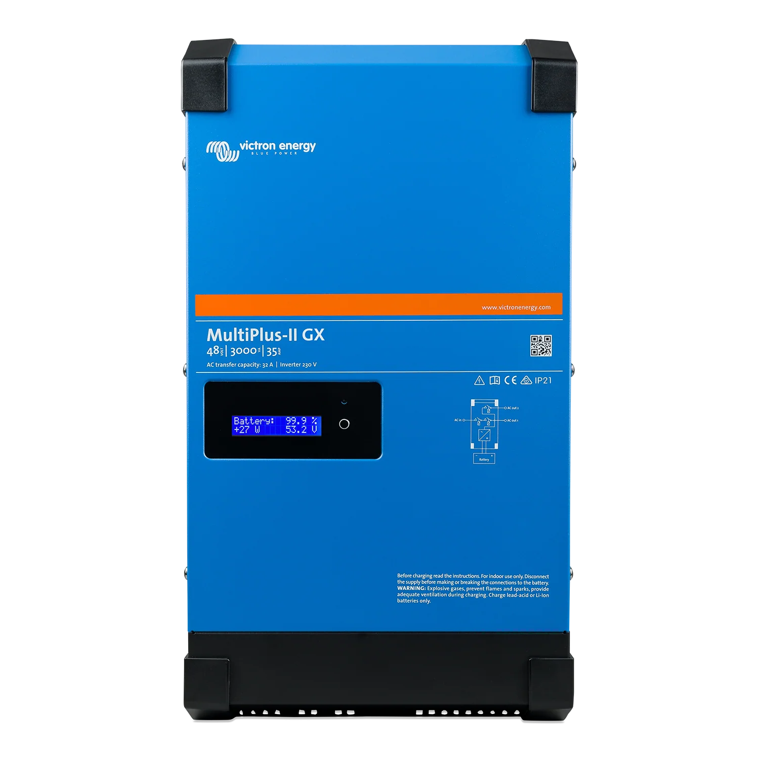 Potencia y respaldo profesional para tu sistema solar. El Victron MultiPlus-II 48V 3000VA 230V 50Hz combina inversor + cargador en un solo equipo, ideal para casas, parcelas y proyectos híbridos/off-grid con banco de baterías 48V. Gestiona la energía de forma inteligente y, ante cortes, conmuta rápidamente para mantener cargas críticas operativas.